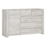 1 Door 2+3 drawer Chest. This beautifull bedroom collection is contemporay and stylish and suitable for all age groups, finished in a modern hard wearing white crafted Oak melamine. This compact 119cm wide chest has lots of storage with 2 small over 3 wide drawers and cupboard with interior shelf.
