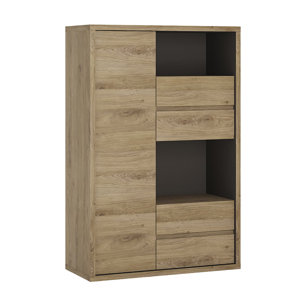 1 Door 4 drawer display cabinet. Enchanting with its simple elegence, Ingenious shape complemented by elegant decor – a perfect marriage. This collection with sharp lines and a bold feeling, fills every living room space requirement.
