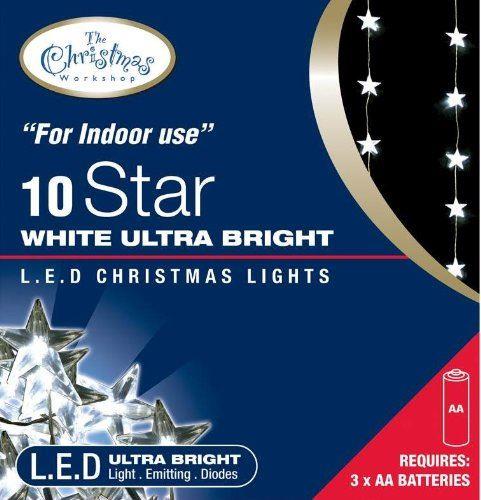 10 LED white star lights are battery operated, and should be used indoor only. Approx. light length – 1m. Brighten up your room with these static fairy lights.