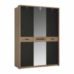 140 cm double bed in Stirling Oak with matt black fronts. Lovely double bed frame with upholstered headboard (made for mattress size 140 x 200cm). This beautiful high-class bedroom collection is a perfect choise for modern and functional living.