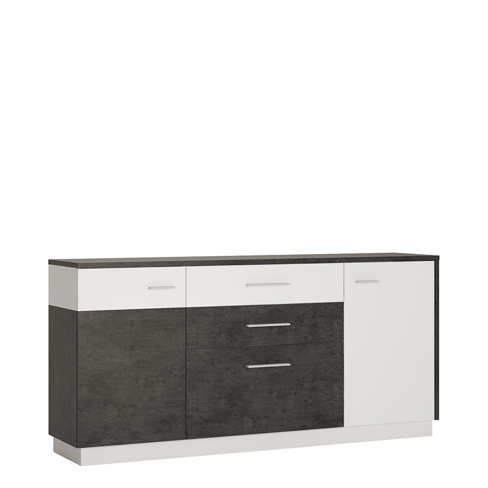 The larger sideboard in the Zingaro range is 50cm longer than its more compact counterpart ? this additional length is utilized with an extra cupboard, meaning even more storage space.