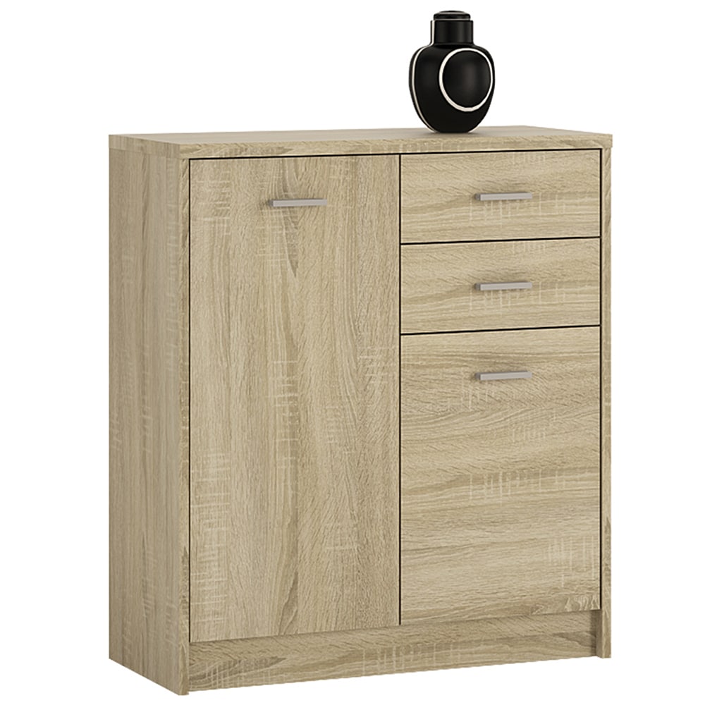 2 Door 2 Drawer Cupboard in Sonama Oak The Easy Gliding Drawers and internal shelving give this small cupboard lots of storage space, whilst taking up minimum amount of floor space, nothing is spared on high quality fixings including cam fixings on drawer fronts and adjustable hinges on all doors. Why not add one of our other 85 cm high pieces or corner unit to complete your collection.