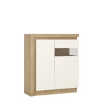 2 door designer cabinet (RH) (including LED lighting) in Riviera Oak/White High Gloss. Compact 2 door 123cm high display cabinet (right hand door opening) has smoky glazed area to display family treasures. Includes concealed lighting arrangement. A high quality collection in a ultra modern design – with each item complementing each other.