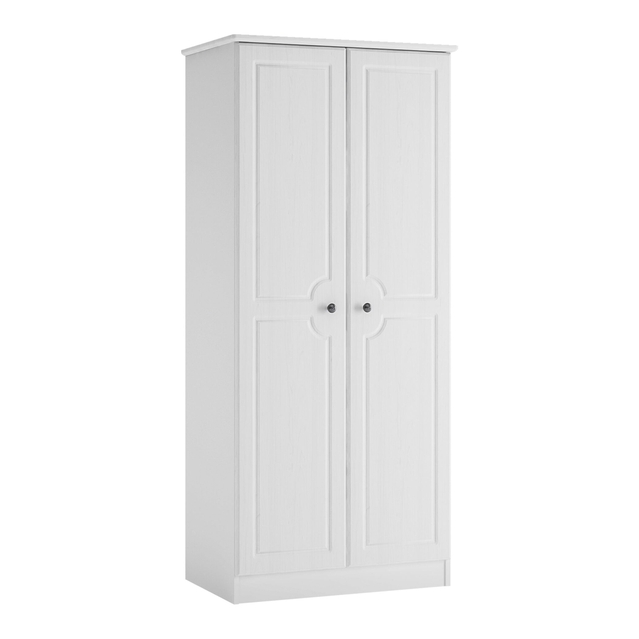 2 door robe in white textured MDF and white melamine. Simple but very stylish this 2 door wardrobe has lots of internal space and include internal shelf and strong metal hanging rail, clever mix of white textured finish and melamine will brighten up any bedroom large or small. This collection, classic with a twist will refresh any size bedroom.