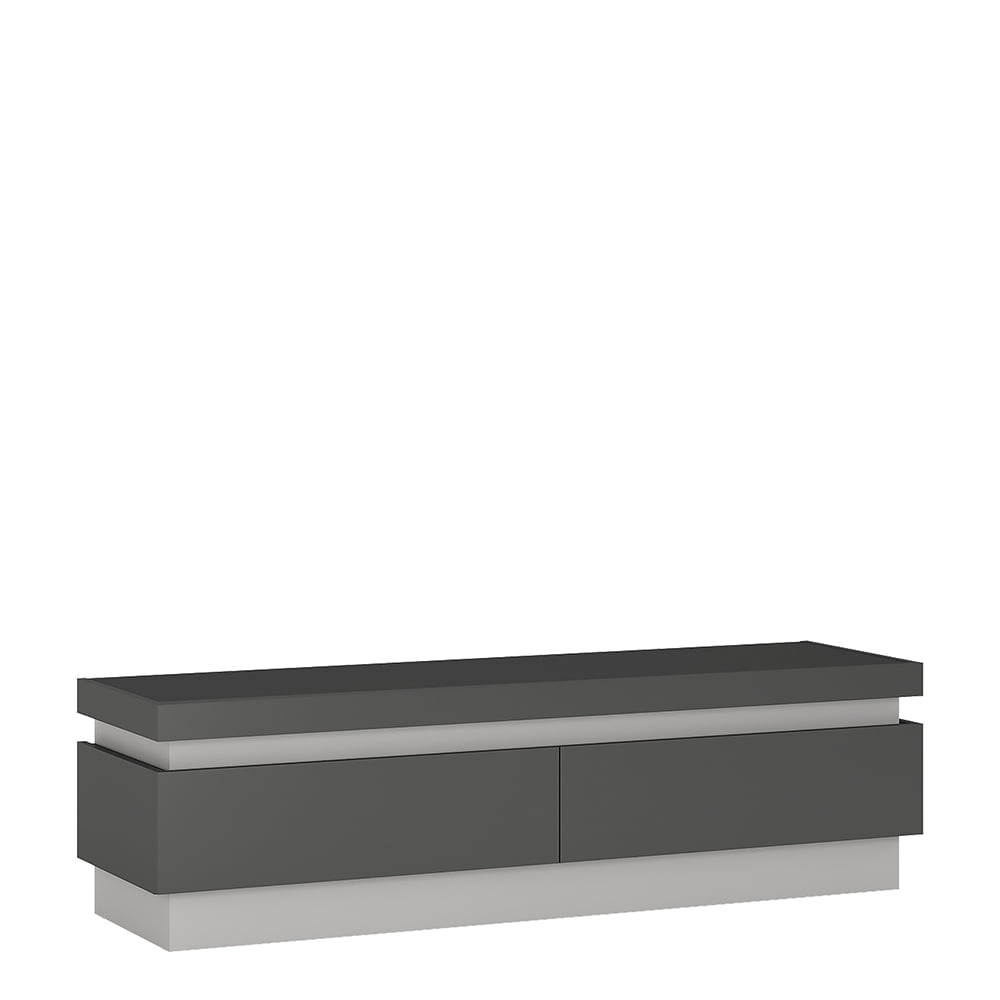 2 drawer TV cabinet (including LED lighting) in Platinum/light grey gloss. Generous 146cm wide TV cabinet, wide enough to take latest TV’s. Plenty of storage in the easy gliding storage drawers. Includes concealed lighting arrangement. A high quality collection in a ultra modern design – with each item complementing each other.