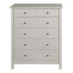 4+2 chest in Soft Grey in attractive black MDF is a beautifully crafted solid chest of drawers for the bedroom. Top 2 small drawers for knick knacks, and 4 wider drawers to store folding clothes. All drawers are on easy glide runners with cam lok system on fronts and are are complimented by the stylish metal handles. The modern shaker design in Soft Grey MDF is finished with a smooth lacquer making this an attractive choice for any bedroom. Why not complete with matching bedside and 2 Drawer robe to offer you customer great package deal.