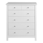 4+2 chest in White in attractive white MDF is a beautifully crafted solid chest of drawers for the bedroom. Top 2 small drawers for knick knacks, and 4 wider drawers to store folding clothes. All drawers are on easy glide runners with cam lok system on fronts and are are complimented by the stylish metal handles. The modern shaker design in white MDF is finished with a smooth lacquer making this an attractive choice for any bedroom. Why not complete with matching bedside and 2 Drawer robe to offer you customer great package deal.