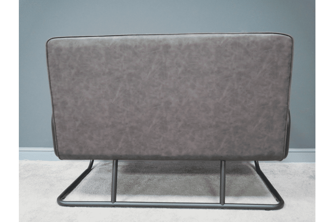 The sofa consists of a tubular steel frame with pu leather grey upholstery and includes a sprung seat.