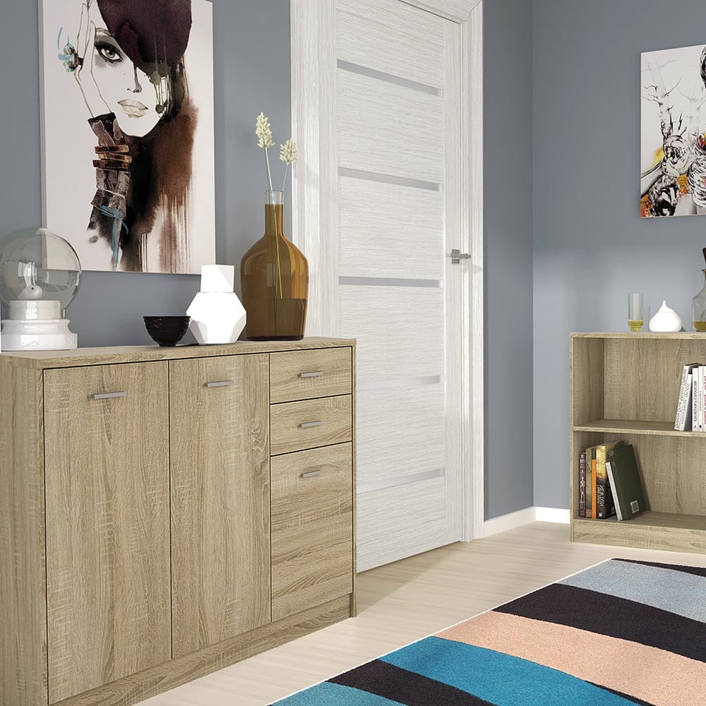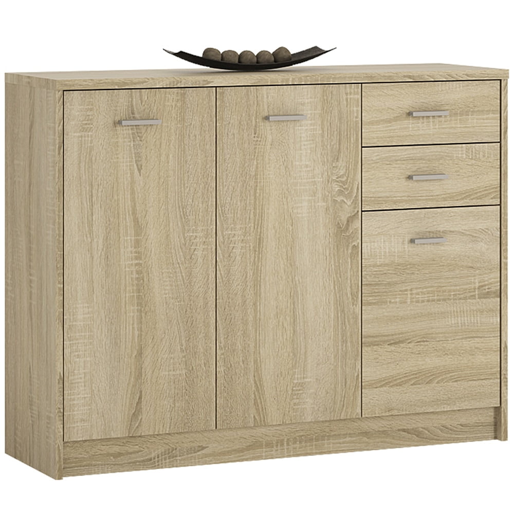 3 Door 2 drawer Wide Cupboard in Sonama Oak Maximum amount of storage area is achieved with these Easy Gliding Drawers and internal shelving. The large top area is perfect for your photos and treasured ornaments, nothing is spared on high quality fixings including cam fixings on drawer fronts and adjustable hinges on all doors. Why not add one of our other 85 cm high pieces or corner unit to complete your collection.