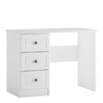 3 drawer dressing table in white textured MDF and white melamine. Can be used as dressing table or students desk, the clever mix of white textured finish and melamine will brighten up any bedroom large or small. This collection, classic with a twist will refresh any size bedroom.