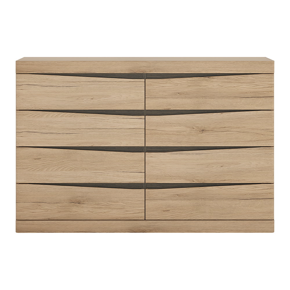 4 + 4 Wide Chest of Drawers in Oak. This fantastic grained oak finish with the contrasting dark trim makes this modern top quality collection of bedroom furniture the ideal destination for the most modern or traditional homes.