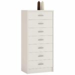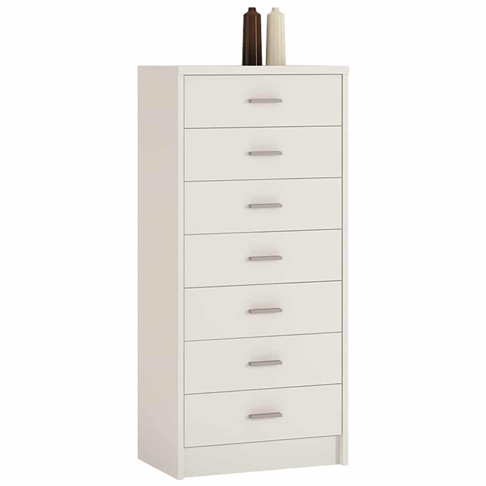 Tall 7 Drawer Chest in Pearl White This storage piece perfect for either bedroom or living area, High quality fixings are used in the construction such as Cam fixings on drawer fronts and easy glide metal drawer runners. Why not add one of our other 112 cm high pieces or corner unit to complete your collection.