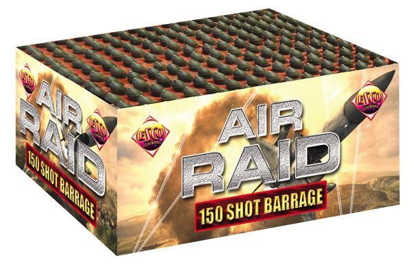 The Air Raid contains 150 rapid firing missiles with loud whistling and crackling.