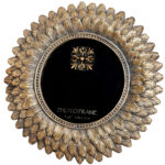 This is an Antique Gold Large Sun Burst Frame, the size of this frame is 18.5cm in width and height and 2.5cm in depth. This would make a stunning addition to any photo frame collection with the gold finish and featherlike framing making it an elegant yet unusual piece. Team with the smaller version (18795) for a perfect ensemble.