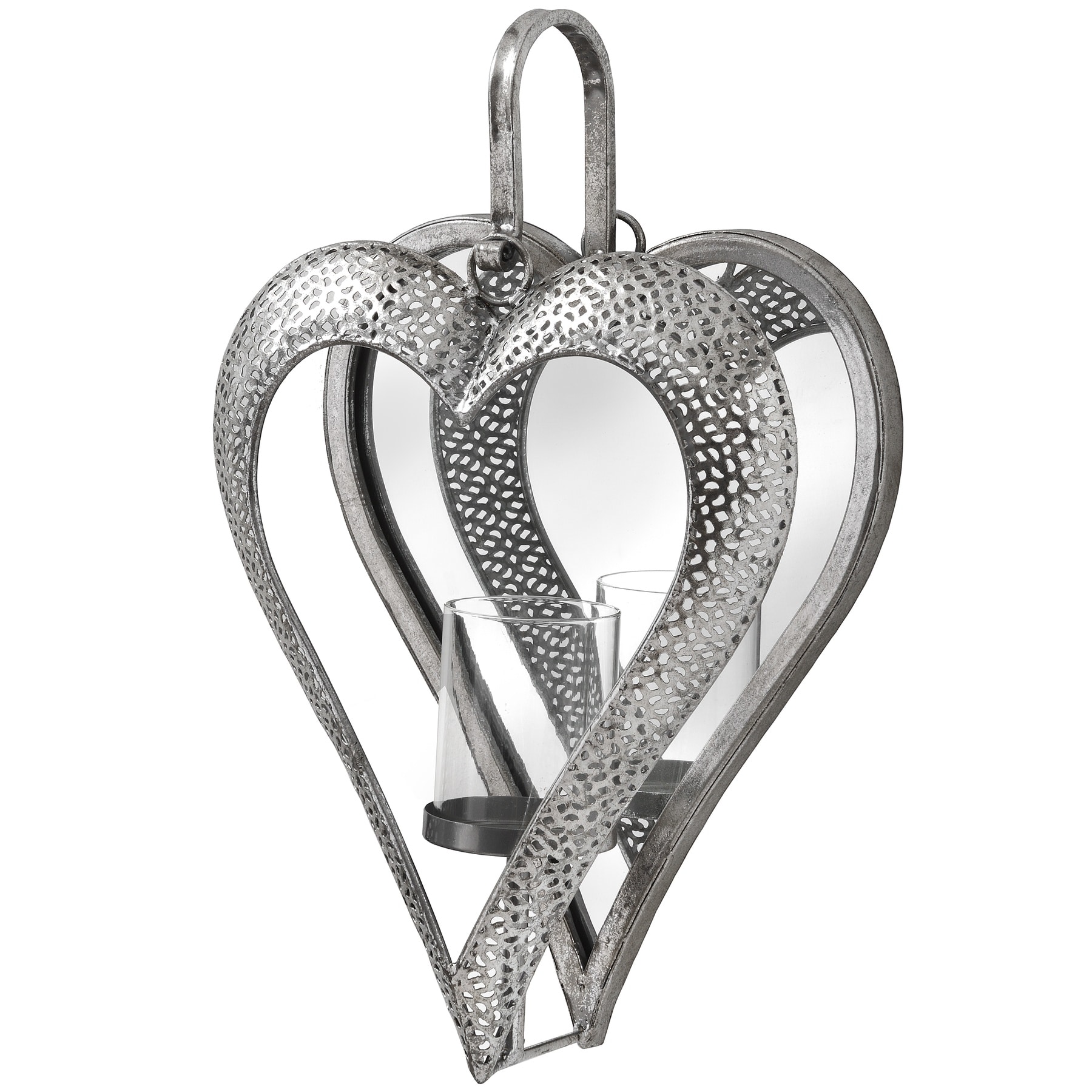 This is the Antique Silver Heart Mirrored Tealight Holder in Small, at 37cm high, this item would make an ideal hanging ornament around many spaces. The antique silver finish with intricate detailing lends itself to the heart shape of the overall candle holder, team with one of our many candles to achieve the desired look, team with the larger version (19159) for a great lighting display.