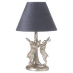 Antique Silver Marching Hares Lamp With Grey Velvet Shade