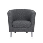 Armchair in Nova Antracit. Simply stylish with sleek lines and cool chrome feet, this armchair is the perfect fit to create a cosy spot in any room. The eye-catching sofa range offers a generous modern design while being irresistible comfortable. Available in Nova Antracit or Nova Light Grey.