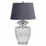 This is the Barnaby Bevelled Mirrored Table Lamp, at 78cm tall and 45cm wide and deep this lamp is sure to make a statement in any interior. The contemporary design of this lamp ensures it will fit into any interior while the mirrored finish teamed with the grey velvet shade brings an element of luxury and glamour into any interior. E27 Screw Bulb