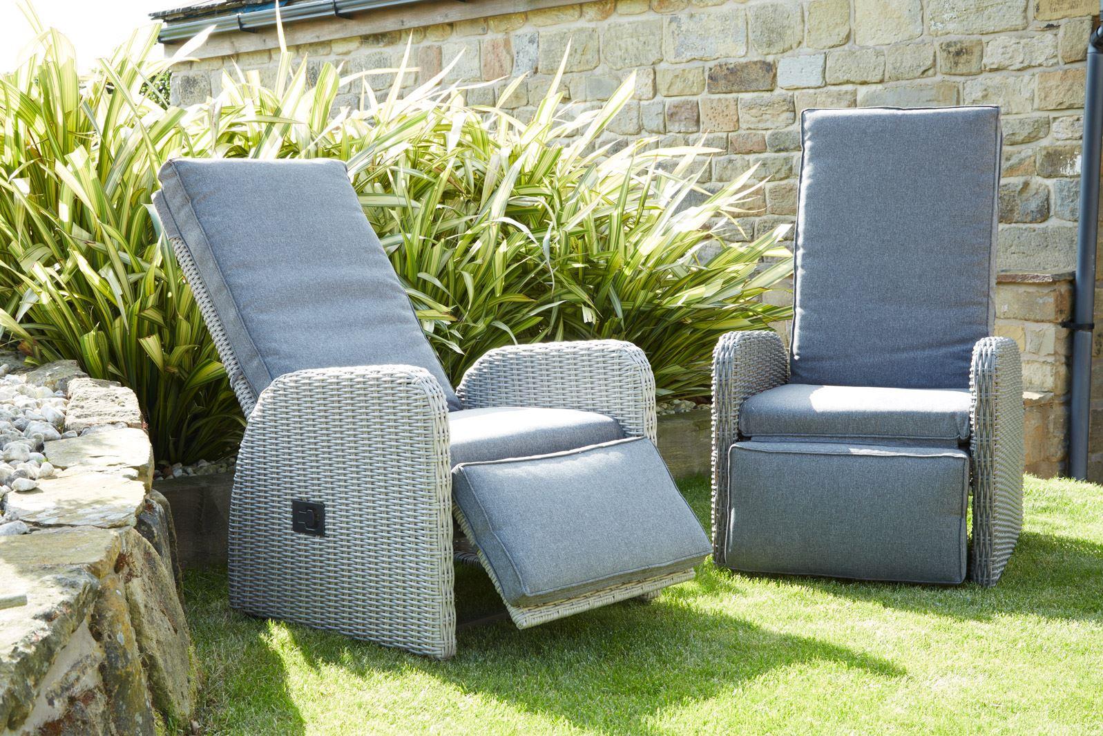 The extensive Barbados range also offers a Gas-Pump Chair Set, which includes 2 Gas-Pump reclining chairs and a Glass-Topped Coffee Table in Slate or Stone Grey. The Gas-Pump Chairs can be reclined right back by simply pulling the lever, allowing for extra comfort and relaxation. This set is weather/UV protected. COFFEE TABLE – 45X45X43CM HIGH CHAIR – 63X73X106CM HIGH
