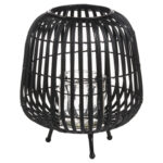 Black Rattan Bulbous Lantern