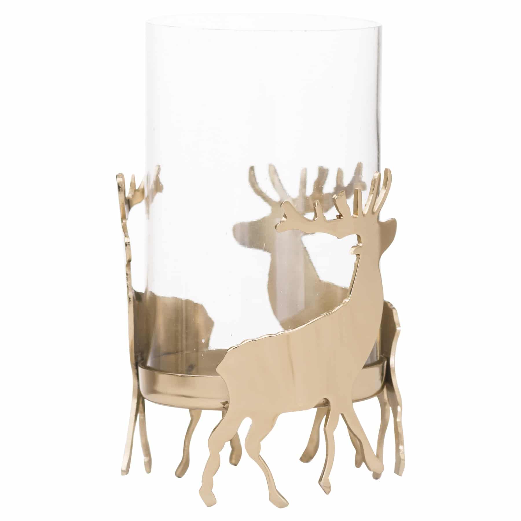 This Brass Stag Hurricane Lantern is a handsome and timeless option for displaying a pillar candle and adding a touch of country inspired decoration to interiors.