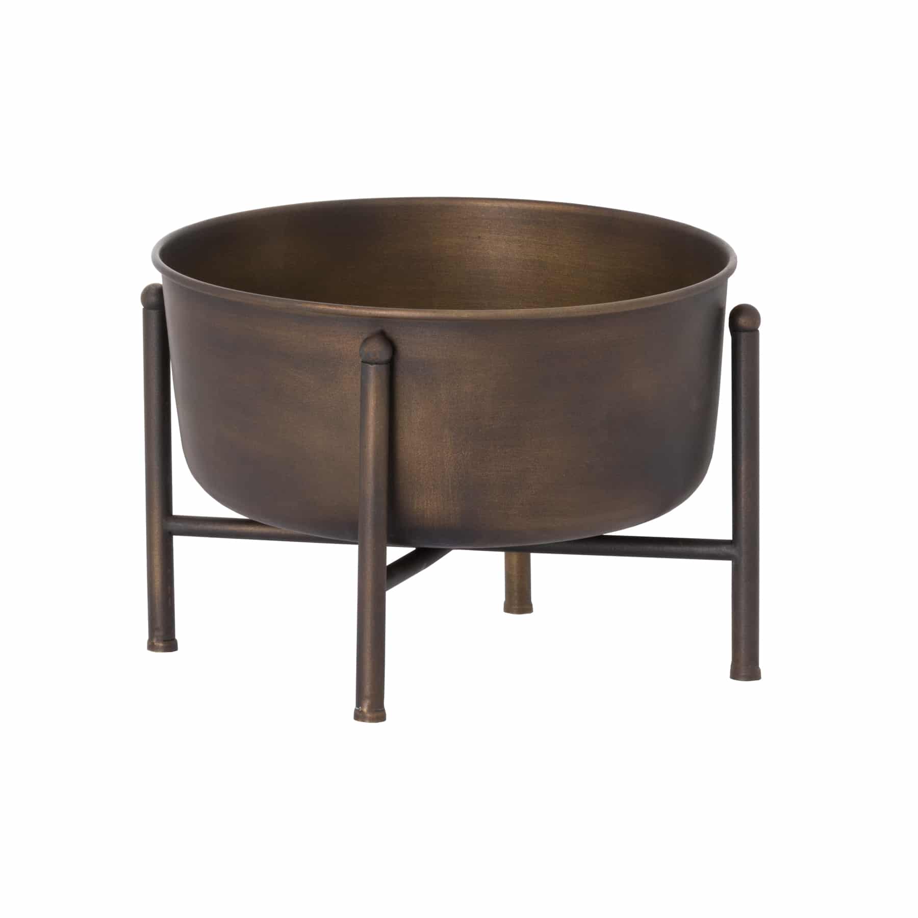 This is the Large Bronze Planter On Frame, a unique and contemporary planter in style and features which is sure to bring an element of design and class into any interior. The bronze finsh and wide shape is extremely functional and also on trend, when finished with a beautiful bundle of greenery it is sure to create an eye catching piece in any interior. At 20cm high and 27cm deep and wide this is a functional size that will be an eye catcher in any interior.