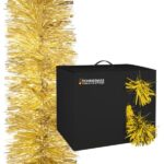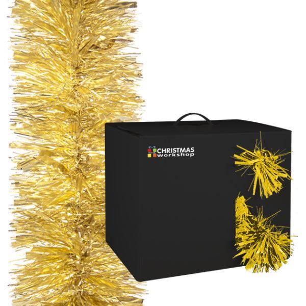 Christmas gold tinsel garland. Size approx. 10m x 150mm. Chunky fine cut 0.07mm.