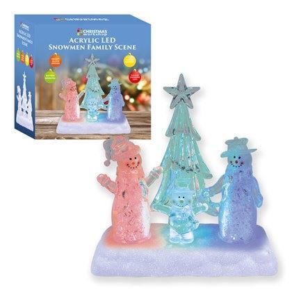 Christmas Battery Operated LED Colour Changing Acrylic Tree and Snowman Family Scene, Acryl, Transparent