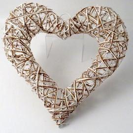 Christmas silver/natural coloured hanging heart wreath, with frost like finish. Size: 38cm.