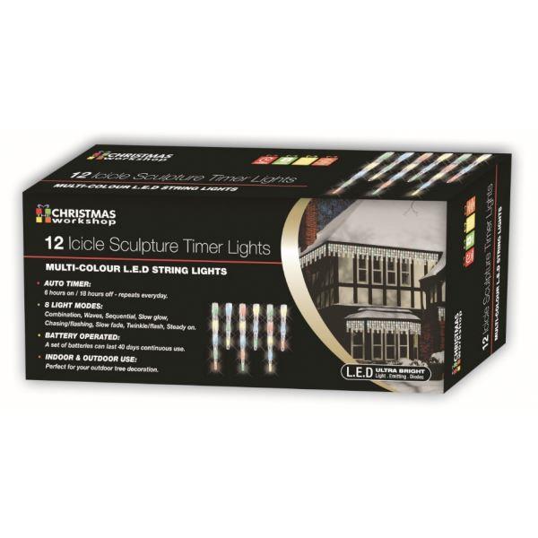 Christmas Icicle Sculpture Timer Lights 12 LED Multi Colour