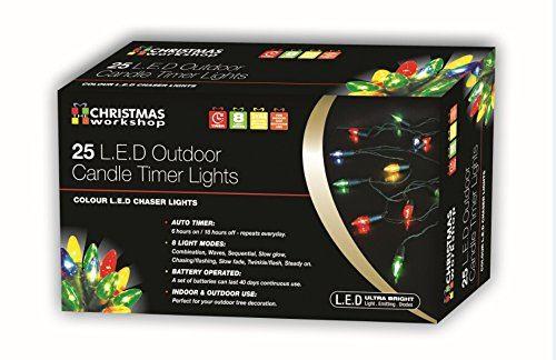 Christmas Workshop 76250 25 LED Battery Operated Chaser Candle String Lights with Timer – Multi-Colour