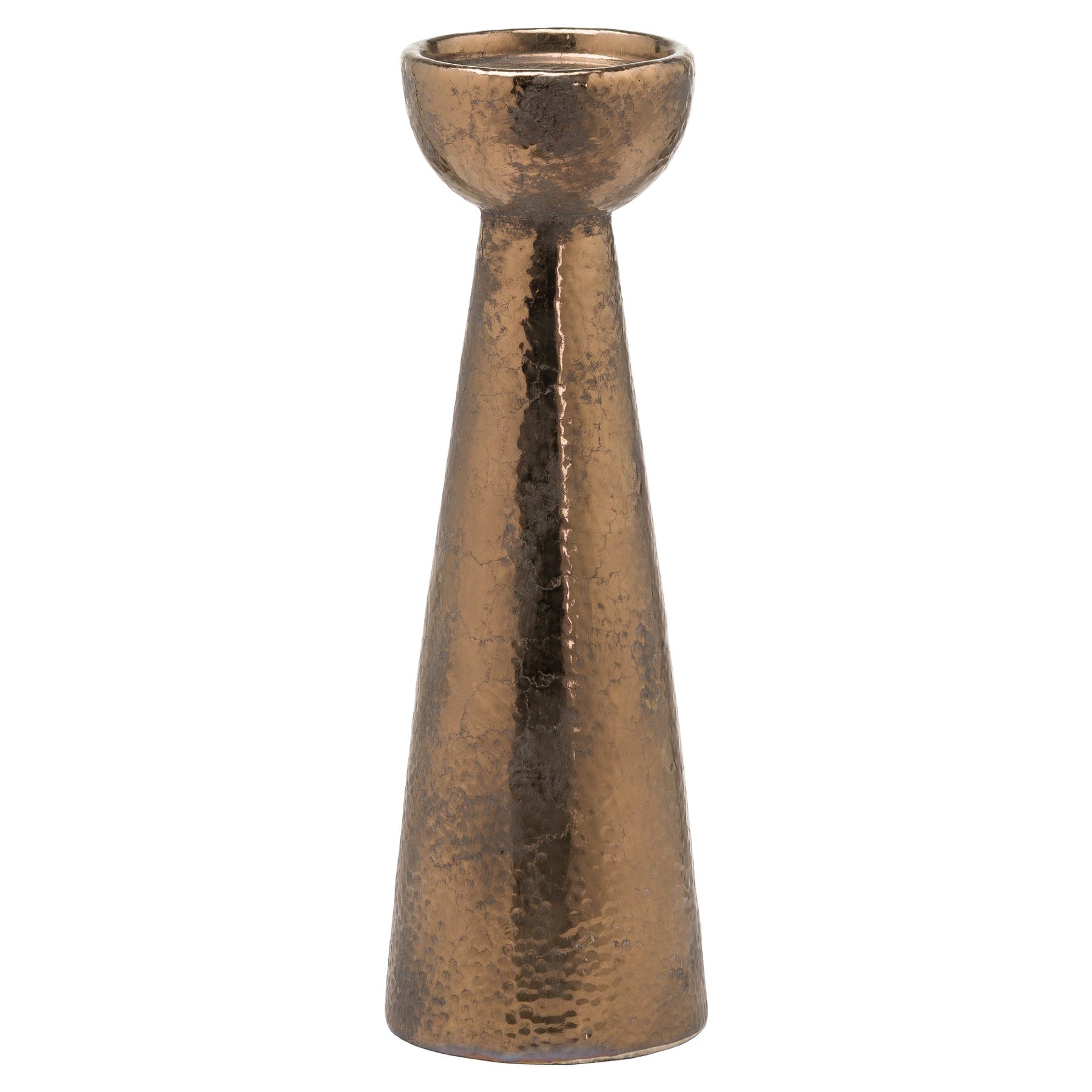 This is the Evi Antique Bronze Small Candle Stand. This item’s bronze finished ceramic and contemporary shape combine to deliver a highly desirable piece that customers will love. This item is part of a set of three, all at varying heights, which will make a stunning display topped by our real wax LED candles. See 20736 and 20737 for other sizes in this item.