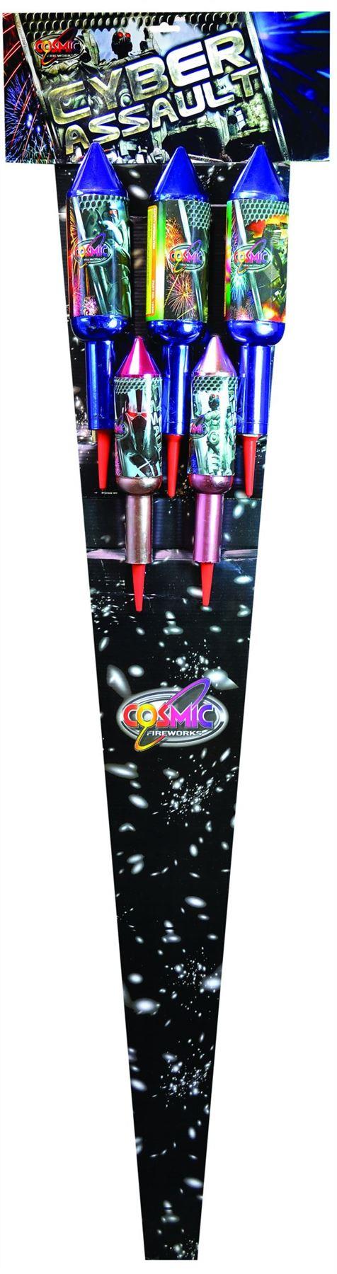 A pack of 5 rockets of two sizes with effects that include green glittering bursts with red dahlia stars, brocade crown effects, colourful peonies, red wave effects with crackle and brocade effects with red glittering stars.