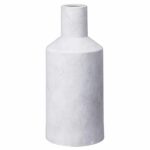 This is the Sutra Vase, part of our Darcy vase collection. This collection encompasses a great mixture or traditional and contemporary shapes. The Darcy Sutra Vase combines a contemporary shape with a timeless colour that will suit modern minimalist and cosy country chic homes alike. The natural stone finish to this elegant vase allows you to layer extra texture into a space and the slim neck of enables the stylish display of a small number of stems. The Darcy vases team beautifully with our faux flowers and are intended for faux rather than real flowers: if customers wish to display real flowers in them, they must use a florist’s cellophane wrap to contain water.