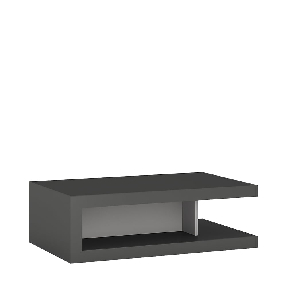 Designer coffee table on wheels in Platinum/Light Grey Gloss. Fantastic geometric designed coffee table, storage all round on shelving. Concealed set of wheels make this easy to move. A high quality collection in a ultra modern design – with each item complementing each other.