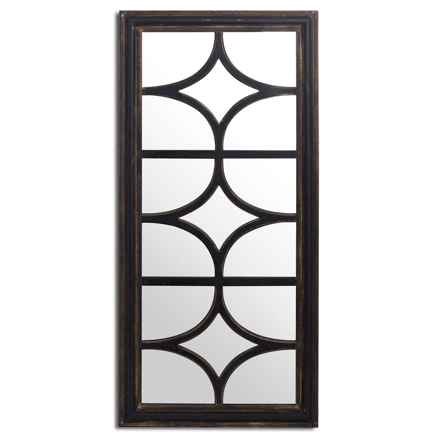 This is the Diamond Effect Large Black Distressed Wall Mirror. This large panel style mirror would make a bold statement wherever it is placed and could be hung vertically or horizontally, to suit the available wall space. A perfect fit with a range of interiors from homes to venues to hotels, it features a geometric diamond cut out feature which adds real visual impact.