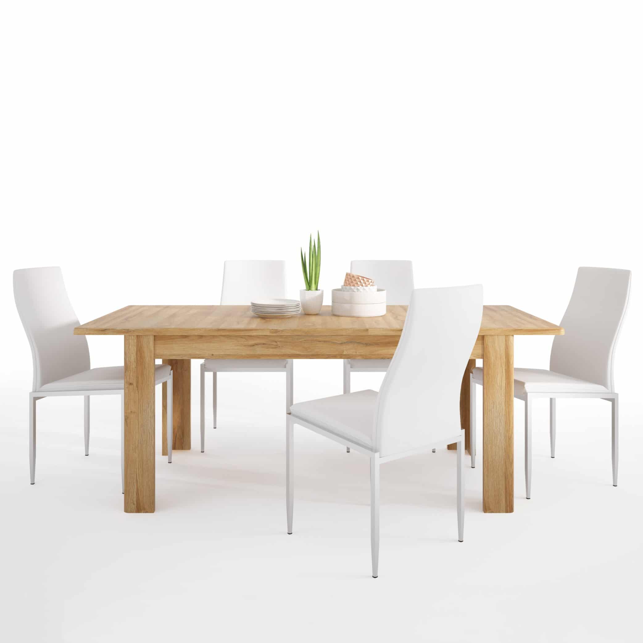 Dining set package Cortina Extending dining table in Grandson Oak + 6 Milan High Back Chair White.
