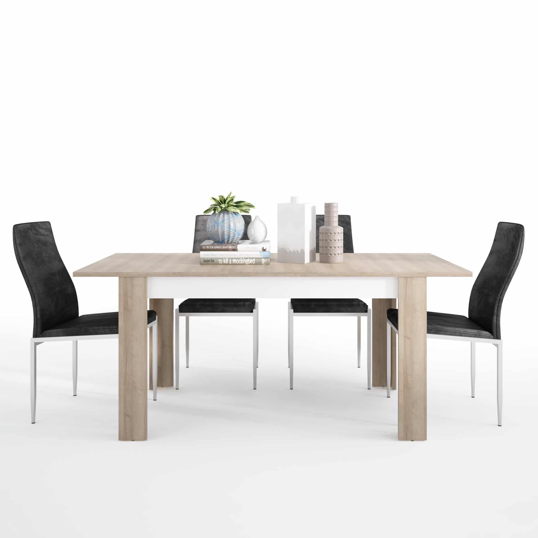 Dining set package Lyon Medium extending dining table 140/180 cm + 4 Milan High Back Chair Black.