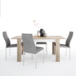 Small extending dining table 90/180cm in Riviera Oak/White High Gloss. This dining table is available in 3 differant sizes and will be a great edition to any dining room. A high quality collection in a ultra modern design – with each item complementing each other. This package includes 6x High Back Chairs in Dark Brown Faux Leather. This stylish dining chair offers a contemporary look; the sturdy Base fashioned from stainless steel giving a shiny chrome look finish and the padded seat and individual shaped back makes this chair extremely comfortable. Material is an extremely hard wearing Faux Leather, this elegant and classic chair will compliment this dining table perfectly! The chairs are already assembled and have a seat height 47.5 cm.