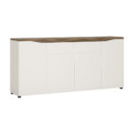 Extending dining table in Alpine White with high gloss fronts and Stirling wooden Oak finish. Great heat and scratch resistant table top, perfect for todays modern dining rooms. This great collection is perfect for lovers of bright and modern interiors, striking and sophisticated. This package includes 4x High Back Chairs in White Faux Leather. This stylish dining chair offers a contemporary look; the sturdy Base fashioned from stainless steel giving a shiny chrome look finish and the padded seat and individual shaped back makes this chair extremely comfortable. Material is an extremely hard wearing Faux Leather, this elegant and classic chair will compliment this dining table perfectly! The chairs are already assembled and have a seat height 47.5 cm.
