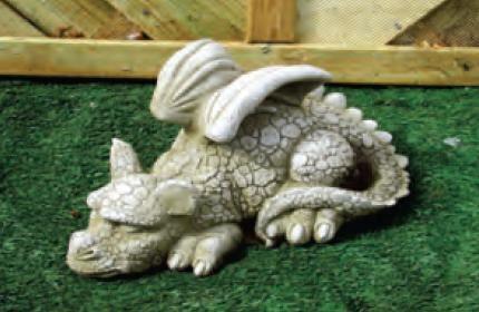 This sleepy dragon garden statue is wonderfully detailed; lying down, sleeping with wings rested and tail curled round. Be careful though – it still has its beady eye you. Weather proof / Frost proof.