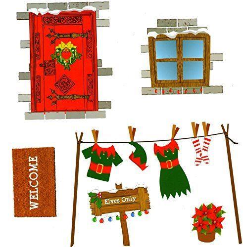 Stickers Include : Door, Window, Door Mat, Plant Pot, Washing Lines & Clothes, Elves Only Sign