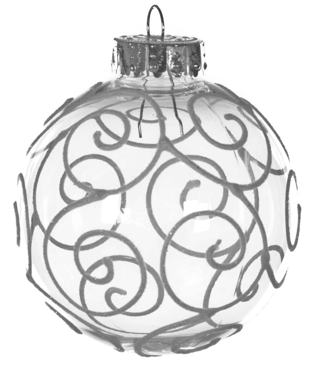 Festive 8 cm Baubles with Glitter Swirl, Pack of 6, White
