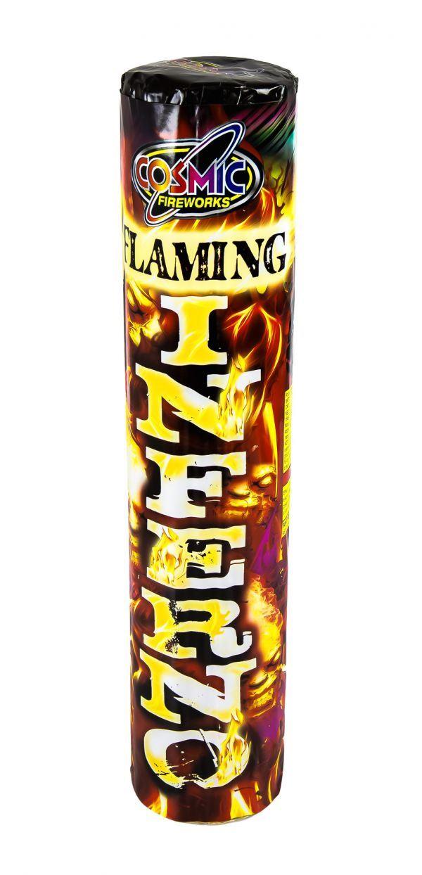 A 1500 shot roman candle barrage ejecting crackling comets and green, purple, yellow, blue and silver coco pearls.