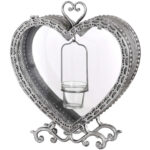 This Free Standing Heart Tealight Lantern in Antique Silver stands at 38cm tall, the addition of the sturdy base means this lantern can be left to free stand making it a no fuss piece of lighting, it is great for use as a table center piece. The antique silver finish complements the elegant design while the intricate wrought iron detailing around the edges of the lantern makes for a stunning addition to this piece. Be sure to take a look at the rest of the Lumiere Collection.