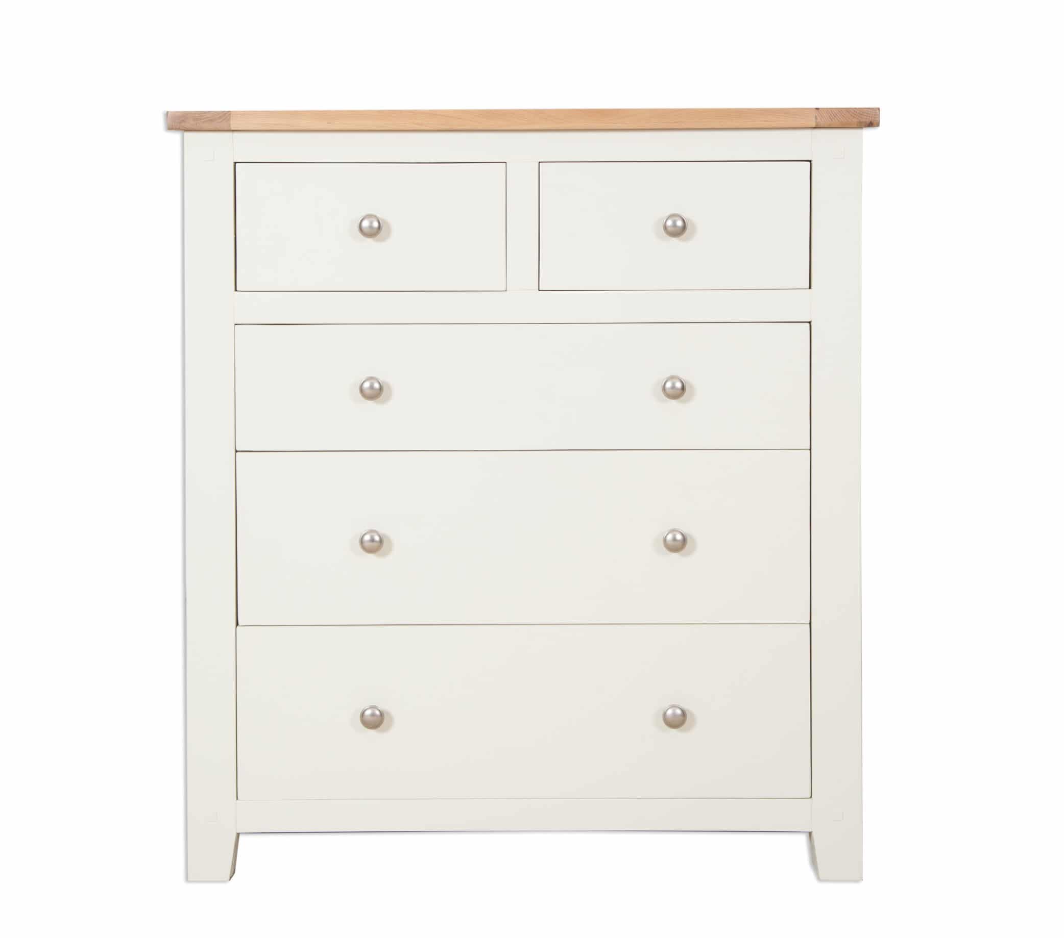 The French Cream Ivory collection offers Bedroom, Dining and occassional pieces to completment any home, manufactured using solid oak, veneered oak, MDF & hardwoods with tradional construction methods and dovetailed drawers. Each piece has a 30mm thick top with a mild rounding of the corners and a distinctive corner peg detail on the front facia’s of the bedroom pieces, and on the tops of the dining and occassional pieces. Finished in a ivory coloured base and natural Satin lacquer on the tops for a long lasting durable finish, with pewter coloured hardware.