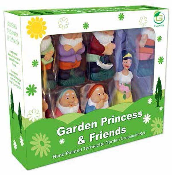 Princess & Friends, Total of 8 terracotta garden ornaments, Princess and 7 gnomes. Colourful to brighten the garden or patio. Fun Garden Ornament to brighten any space. Makes ideal gift for adults or children. Indoor or outdoor use. Made from Terracotta (Please note this is not a toy).
