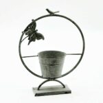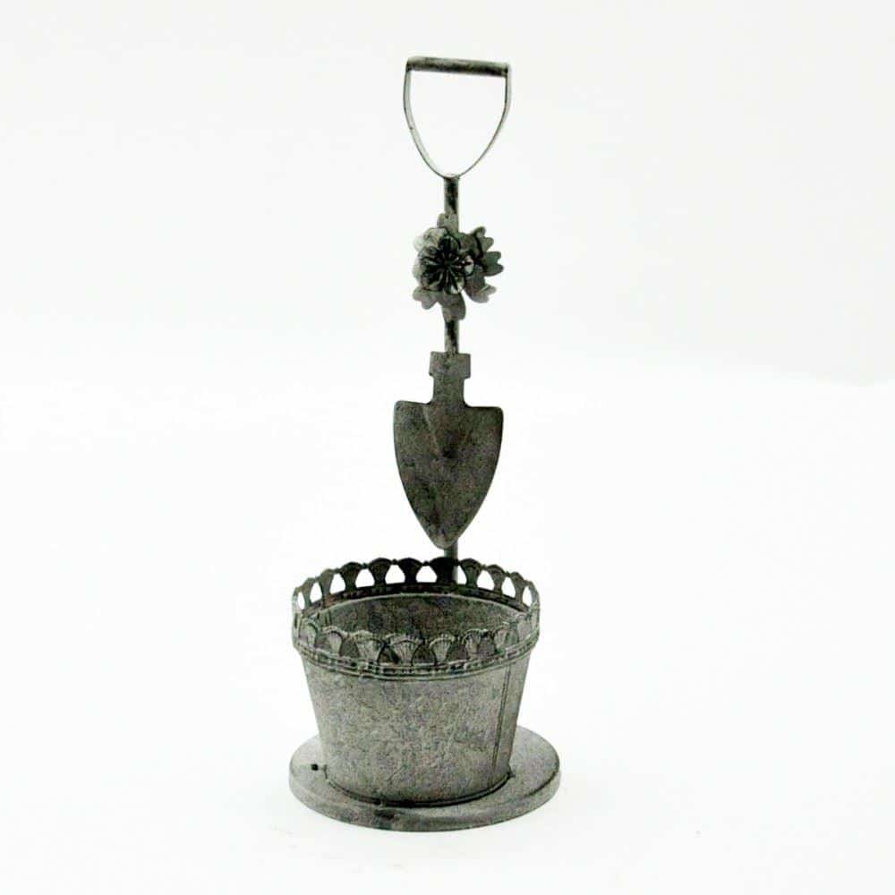 Garden Metal 47cm Lead Colour Planter With Fork And flower Design