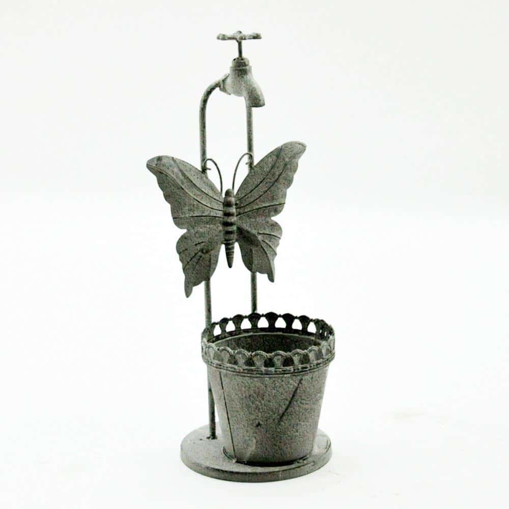 Garden 46cm Lead Colour Planter Butterfly And Tap Design