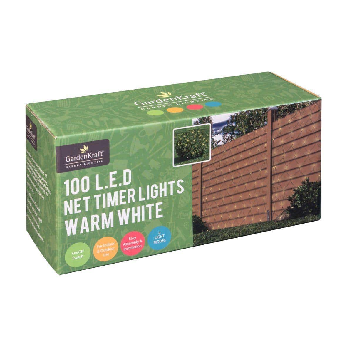 GardenKraft 15650 Battery Operated Net Timer Light with 100 LED – Warm White